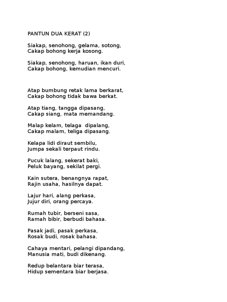 Terima kasih daun keladi kalau ada beri lagi. Dari Malaka ke negeri Campa. Anak nakal mari bertobat.